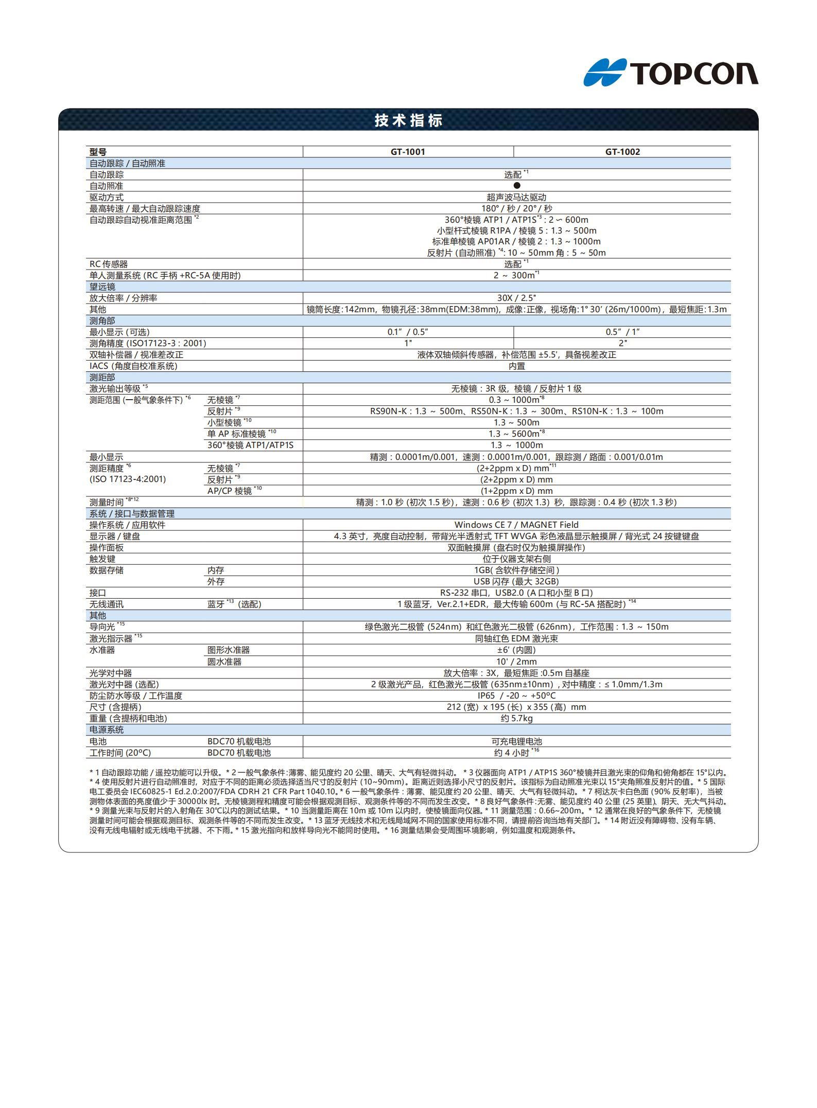 详细信息| 询价留言品牌:拓普康 型号:GT1001 加工定制:否 放大倍率:30倍 测角精度:1秒 测距精度:(1+2ppm x D) mm 测程:1.3 ~ 1000m 高速测距:0.6 s 测距精度:(1+2ppm x D) mm -