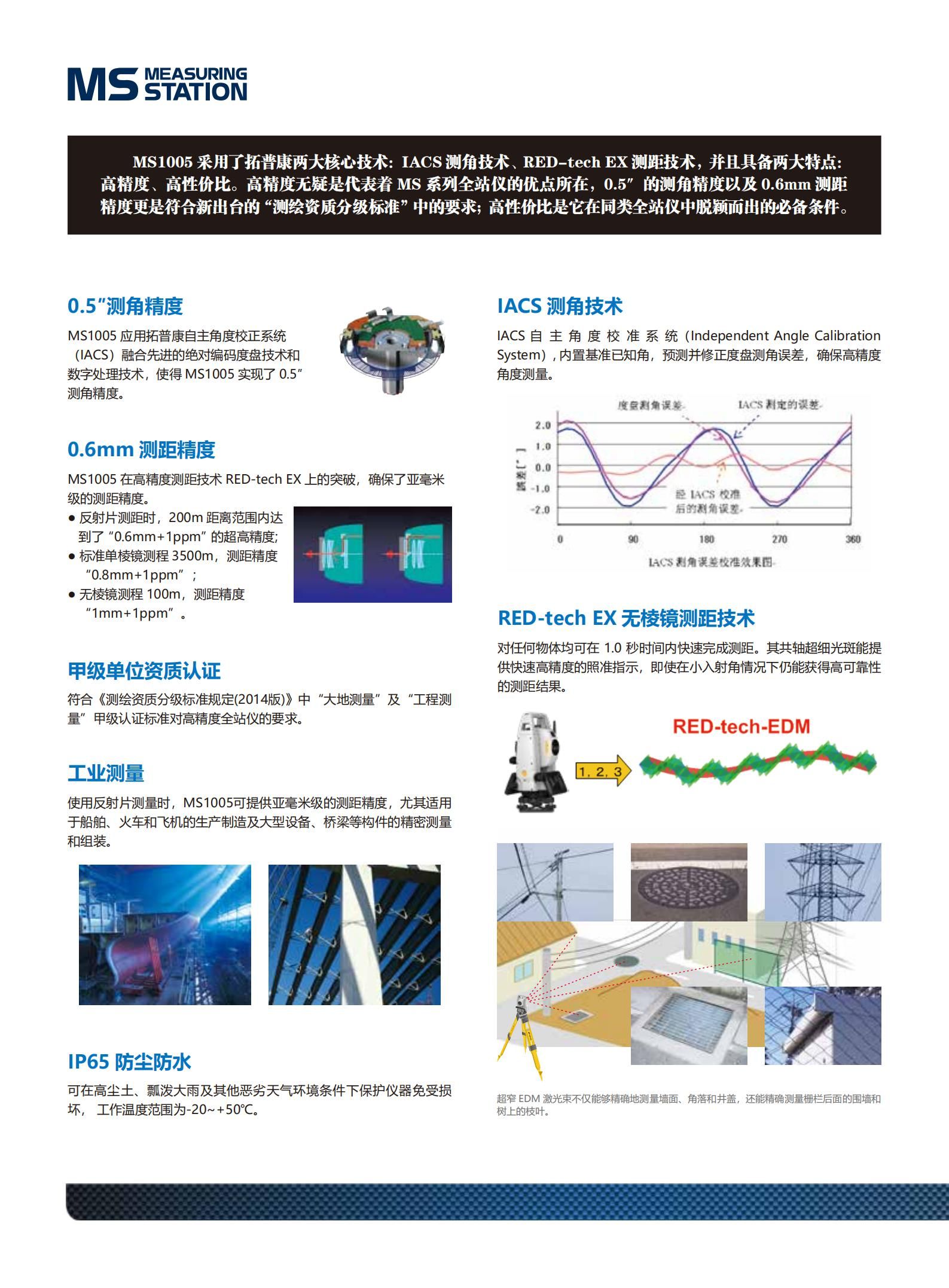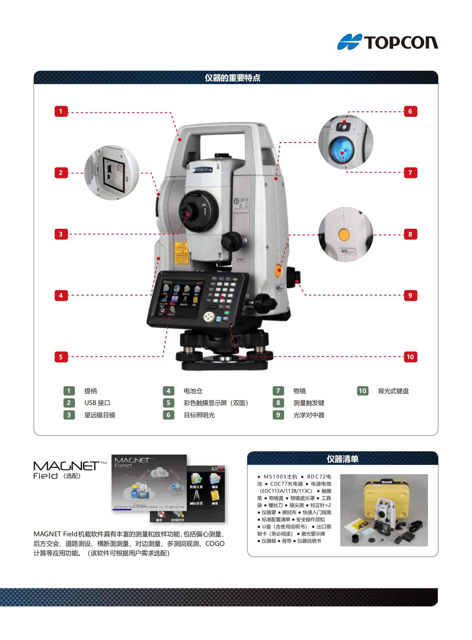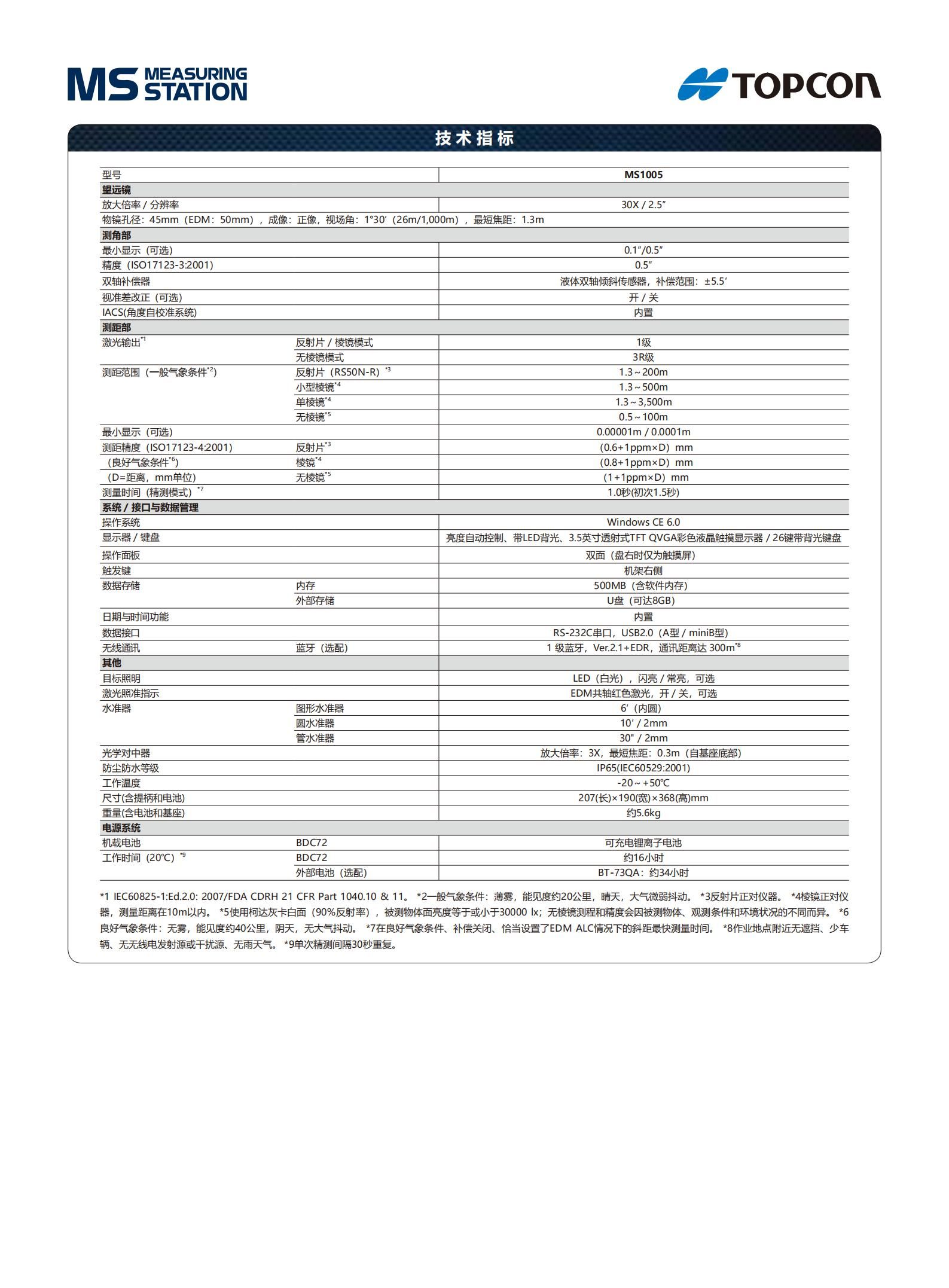详细信息| 询价留言品牌:拓普康 型号:MS1005 加工定制:否 放大倍率:30x 测角精度:0.5秒 测距精度:(0.6+1ppm×D)mm 测程:1.3~3,500m 高速测距:1.0秒 测距精度:(0.6+1ppm×D)mm -