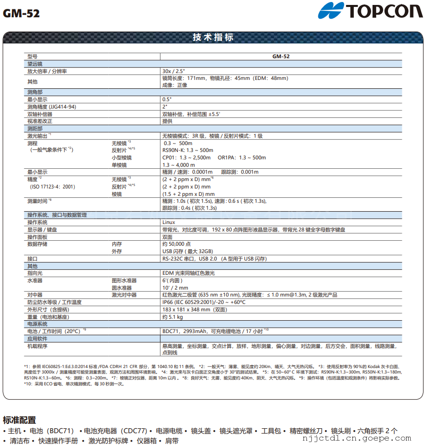 详细信息| 询价留言品牌:拓普康 型号:GM52 加工定制:否 放大倍率:30 测角精度:2秒 测距精度:2mm 测程:4000 测角精度:2秒 测距精度:2mm -